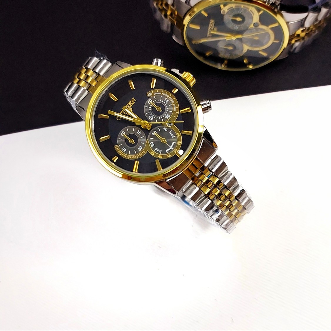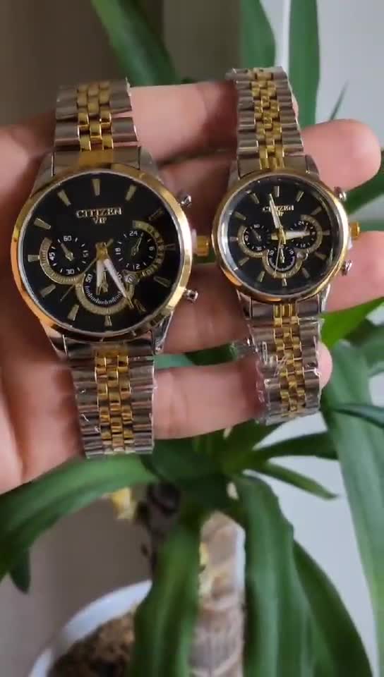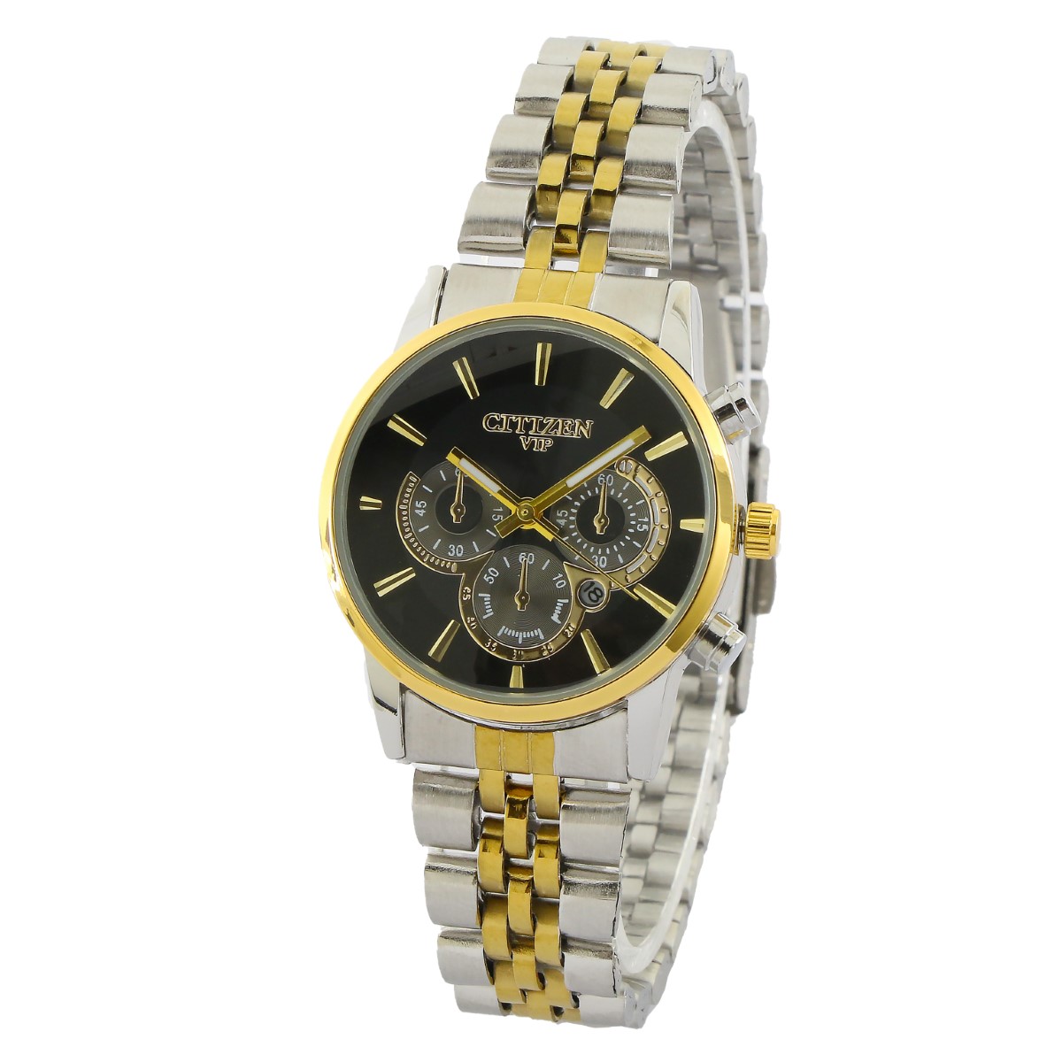 ساعت مچی مردانه و زنانه بند استیل سیتیزن VIP رنگبندی کامل - نقره ای طلایی صفحه مشکی / ست زنانه/مزدانه
