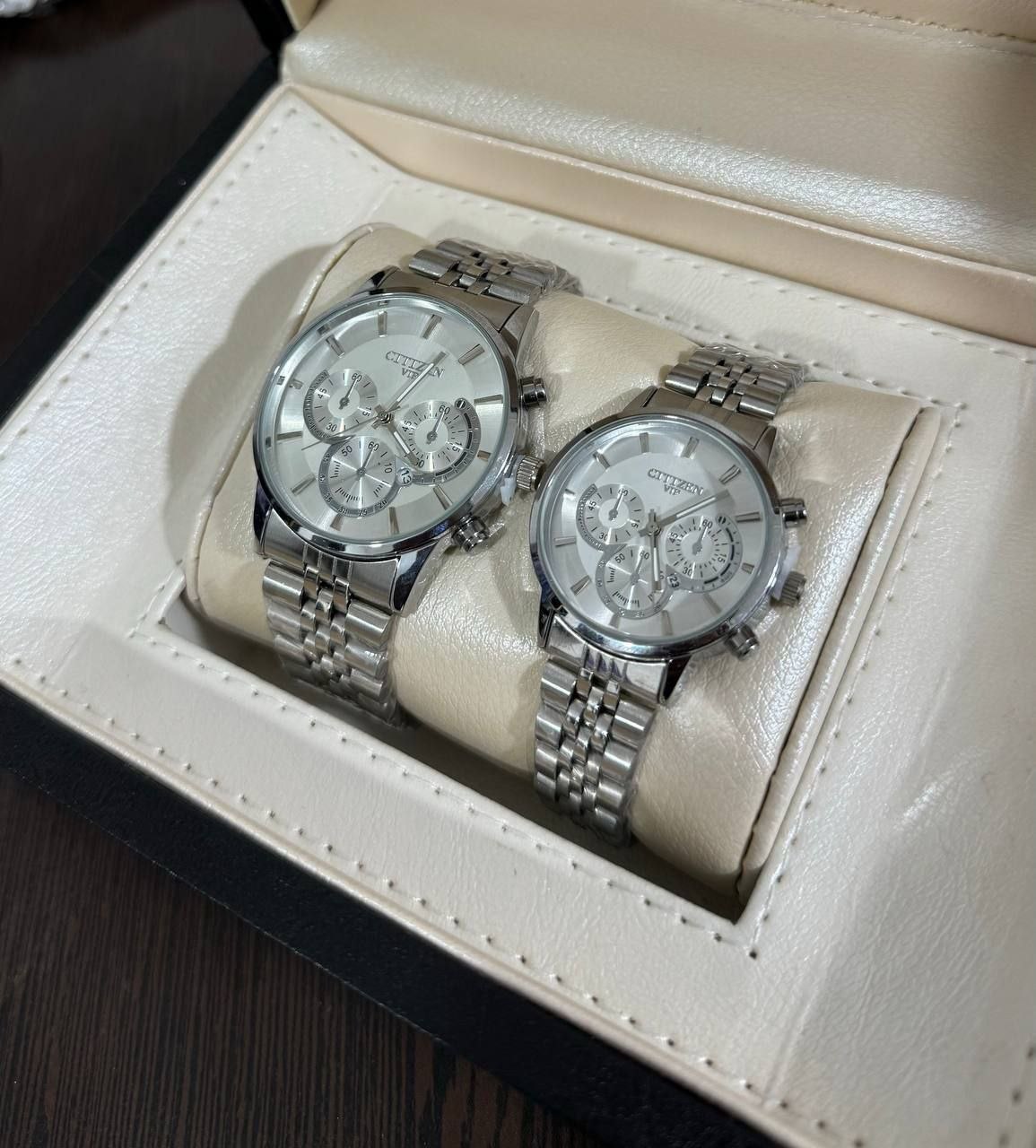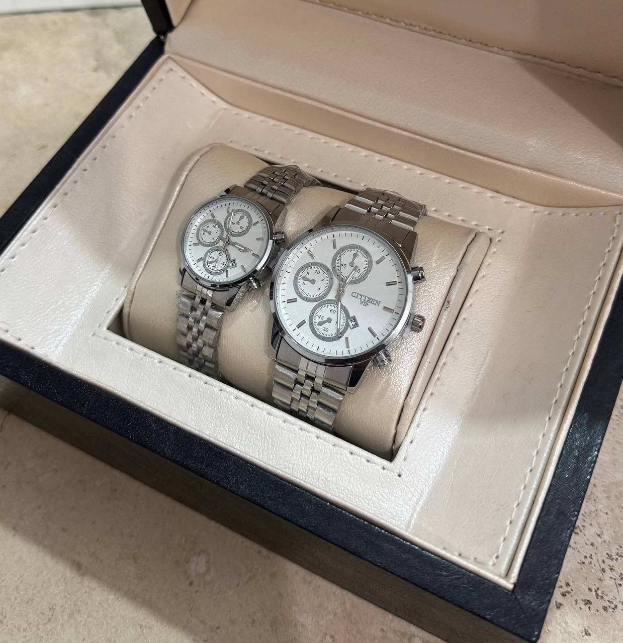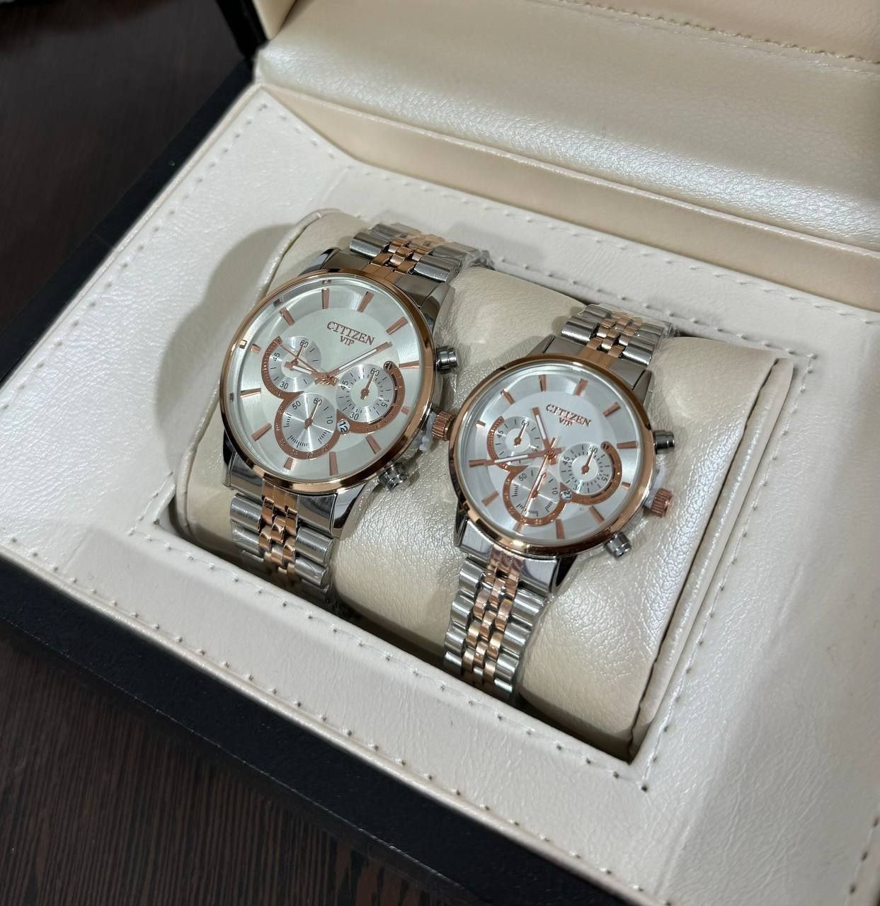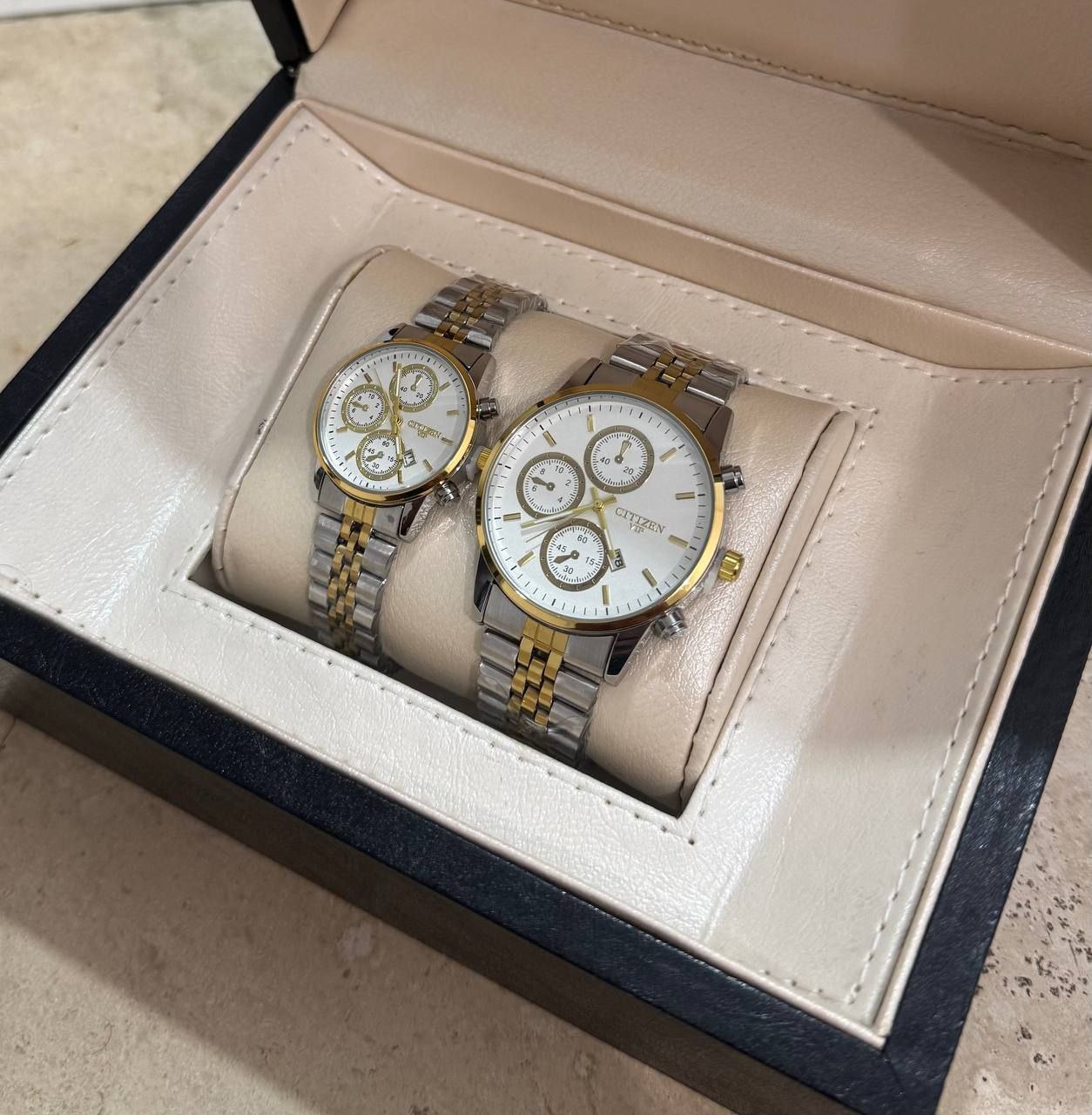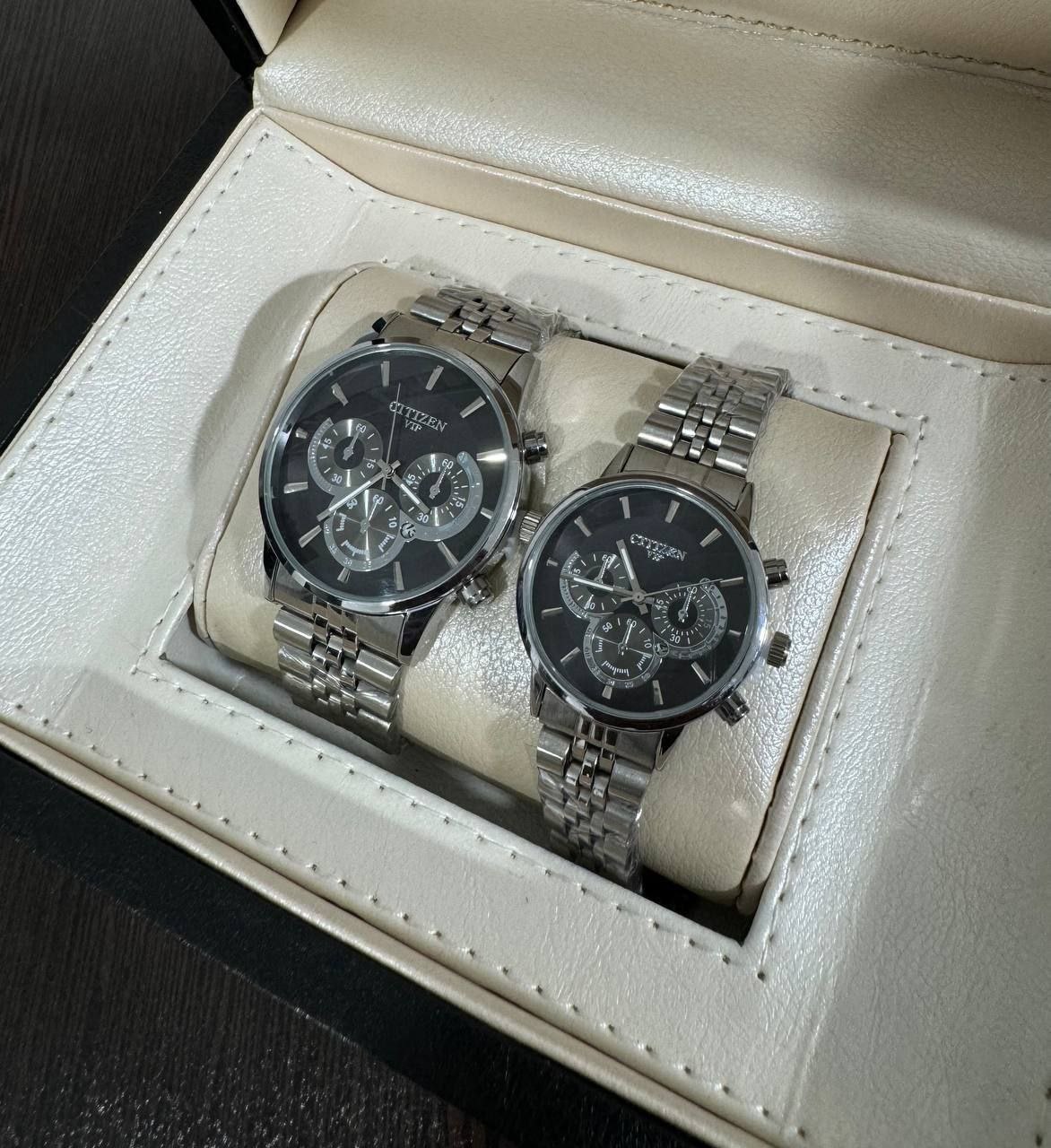 ساعت مچی مردانه و زنانه بند استیل سیتیزن VIP رنگبندی کامل - نقره ای طلایی صفحه مشکی / ست زنانه/مزدانه