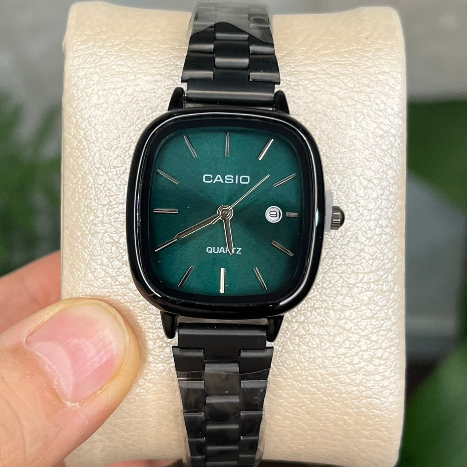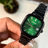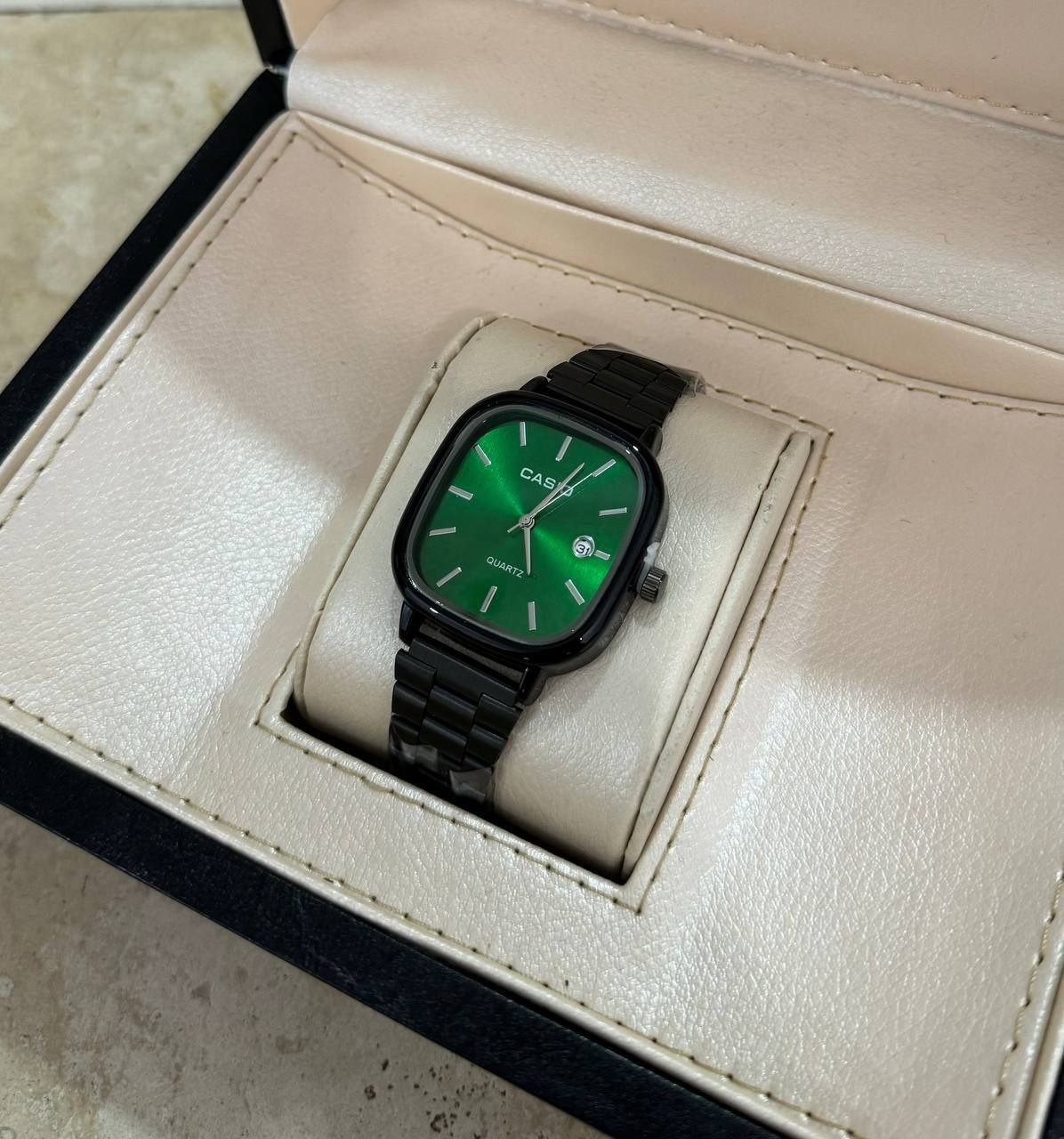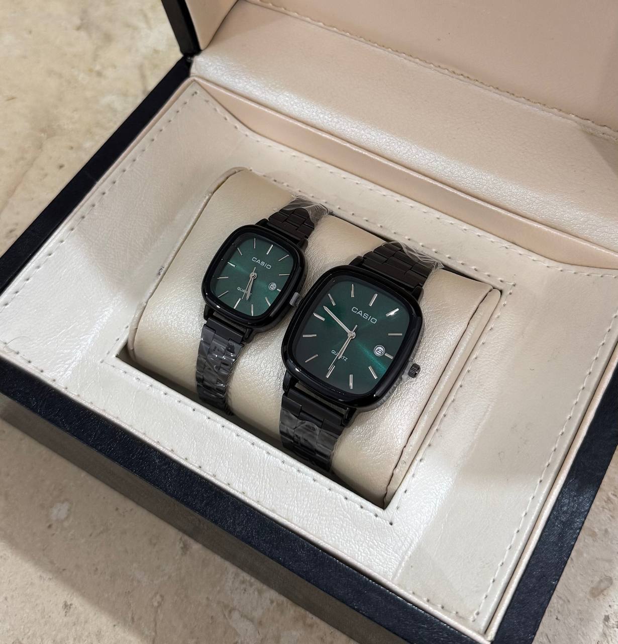 ست ساعت مچی زنانه و مردانه کاسیو Casio | صفحه سبز و بند استیل مشکی