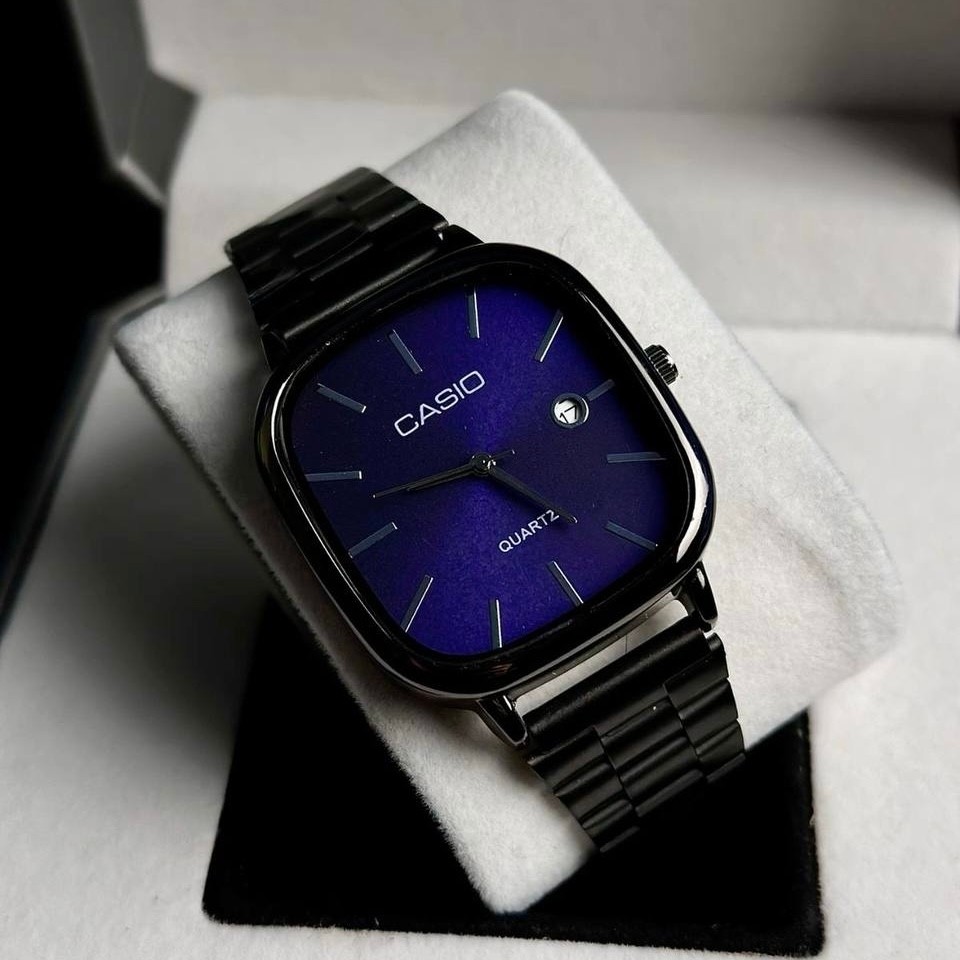 ست ساعت مچی زنانه و مردانه کاسیو Casio صفحه آبی بند استیل مشکی