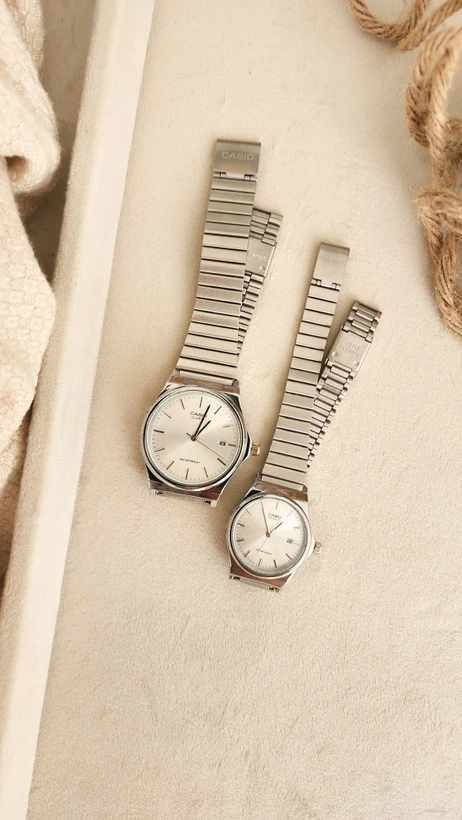ساعت ست زنانه و مردانه مدل کاسیو گادفادر رنگ سیلور بند کرکره ای - زنانه: