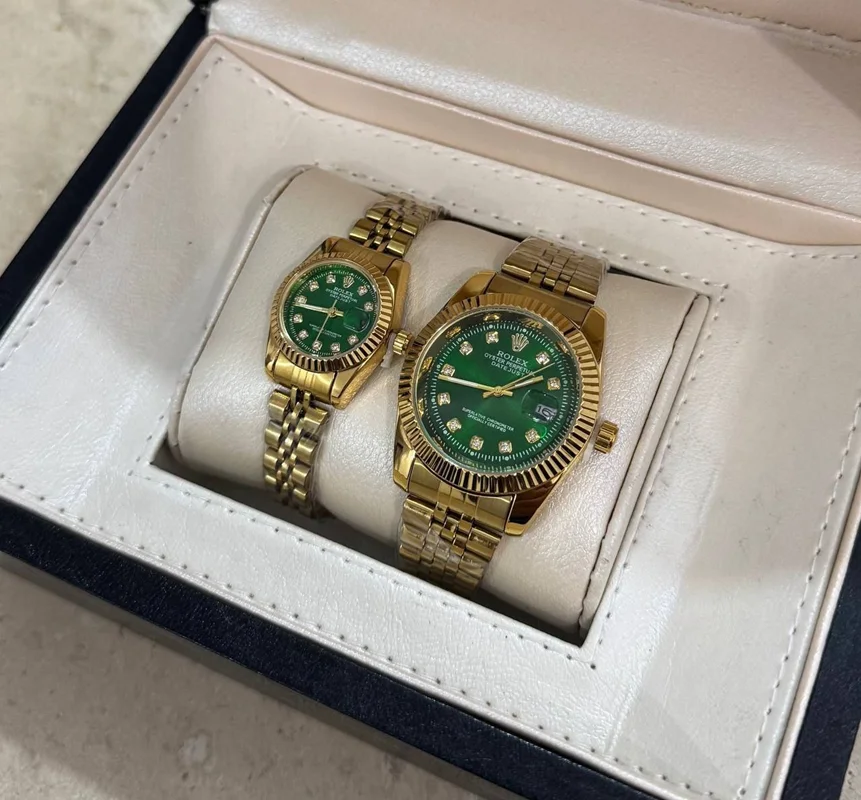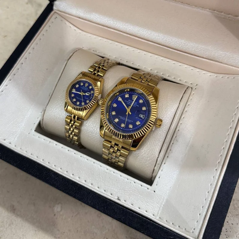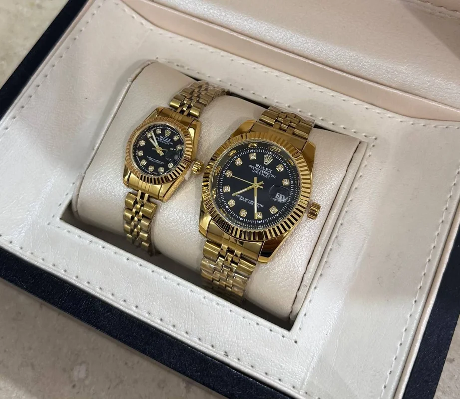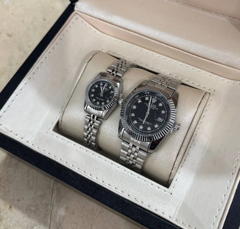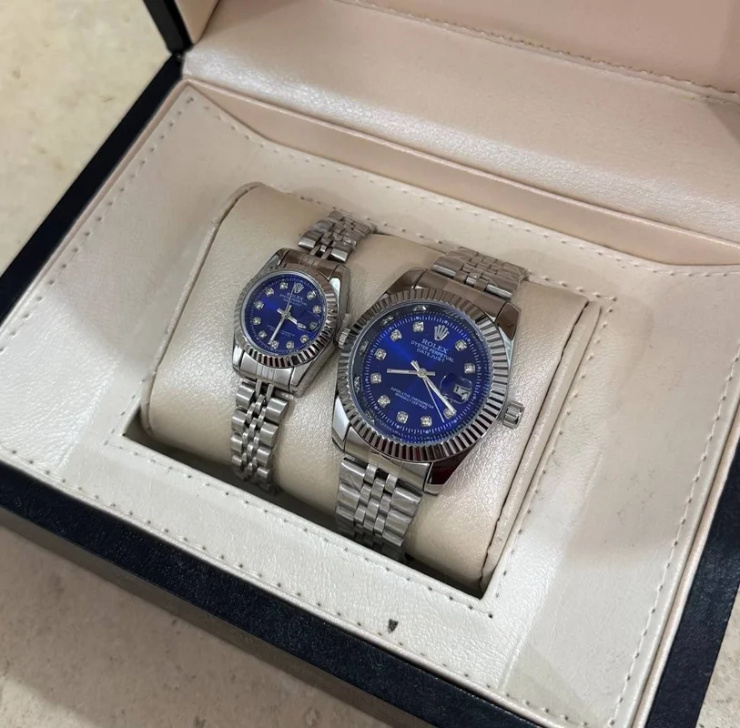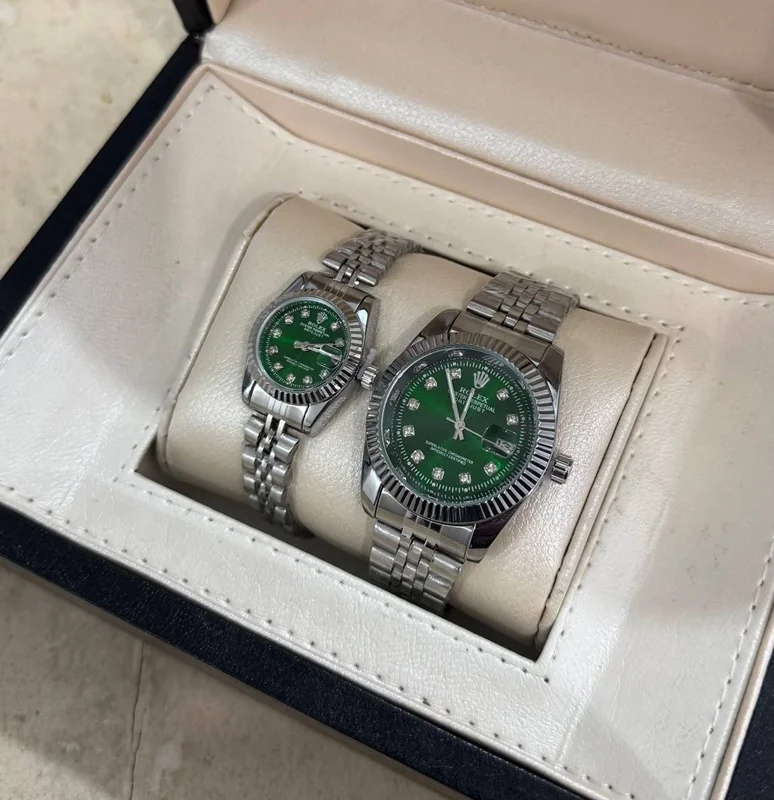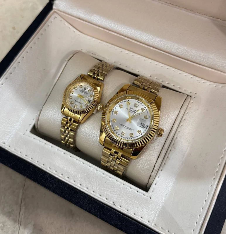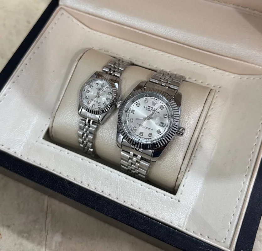ست ساعت مچی رولکس بند استیل نقره‌ای و طلایی